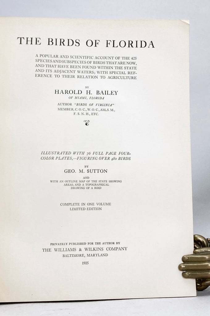 Pp. xxi, 146, 76 full page color plates by Geo M. Sutton, one map. Brown patterned cloth, 4to. Limited edition privately published for the author.