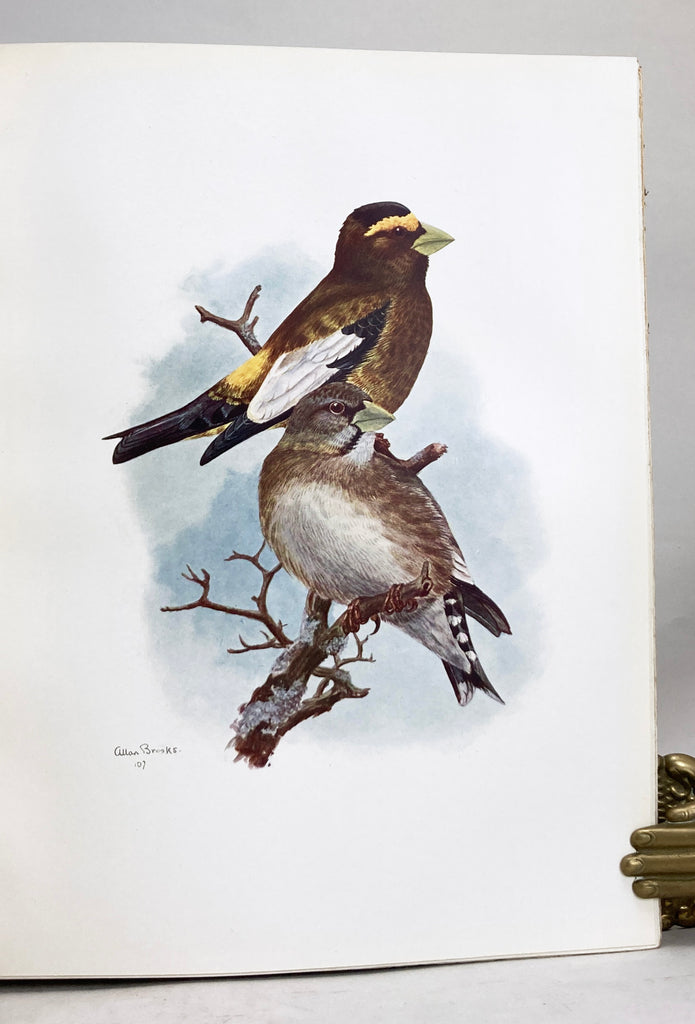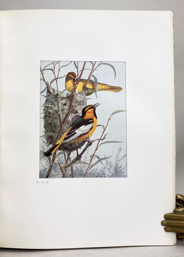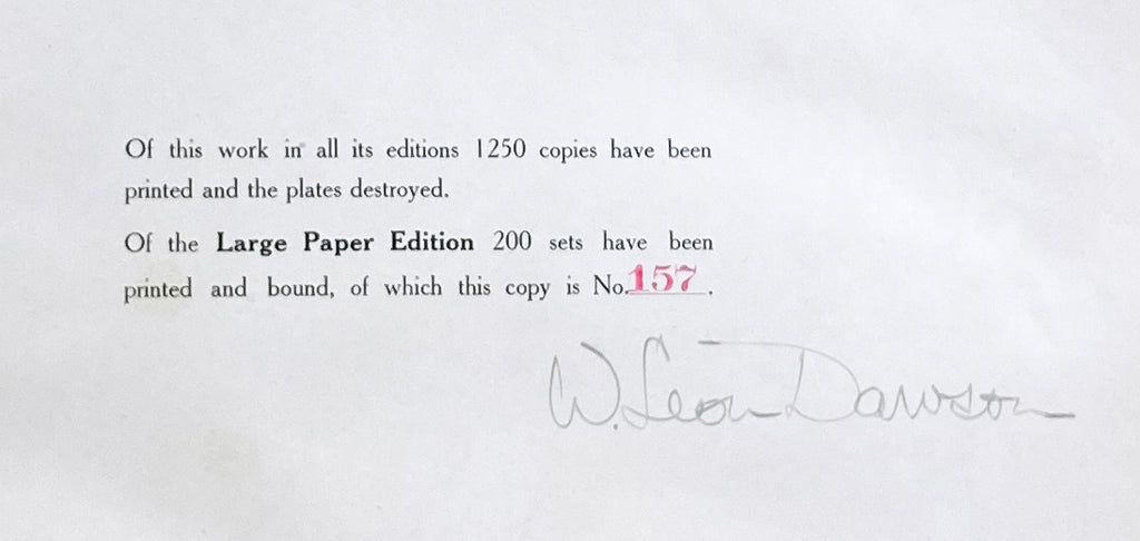 Pp. xv, 458, 21 full page plates including 3 photographs, 8 color-plates, 7 half-tones, and 3 photogravures. One-half gray cloth (spine) over gray paper covered boards, lg 4to. The Large Paper Edition was limited to 200 sets sold only by subscription. This copy is numbered 157 and is signed by Dawson. Volume 1 describes 181 species. The color-plates are by Allan Brooks.