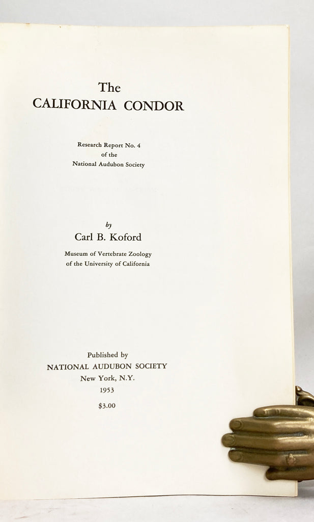 Pp. xiii, 154, color frontis, 31 black and white plates, 15 text-figures. Original printed wrappers, sm 4to. National Audubon Society Research Reports no. 4. This is the very scarce original edition of this important monograph on this endangered North American species.